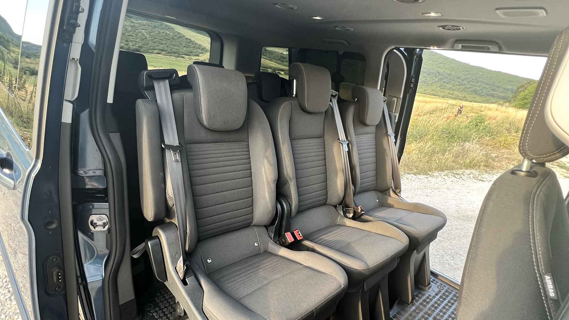 Kényelem és utasok biztonsága: A Ford Tourneo mikrobuszban a halk utastér, automata váltó, a kényelmes ülések és a jó minőségű anyagok biztosítják az utazás kellemes élményét. Emellett a jármű biztonsági funkciókkal van felszerelve, mint például az ütközésre figyelmeztető rendszerek, a vészfékasszisztens és a menetstabilizáló rendszer.